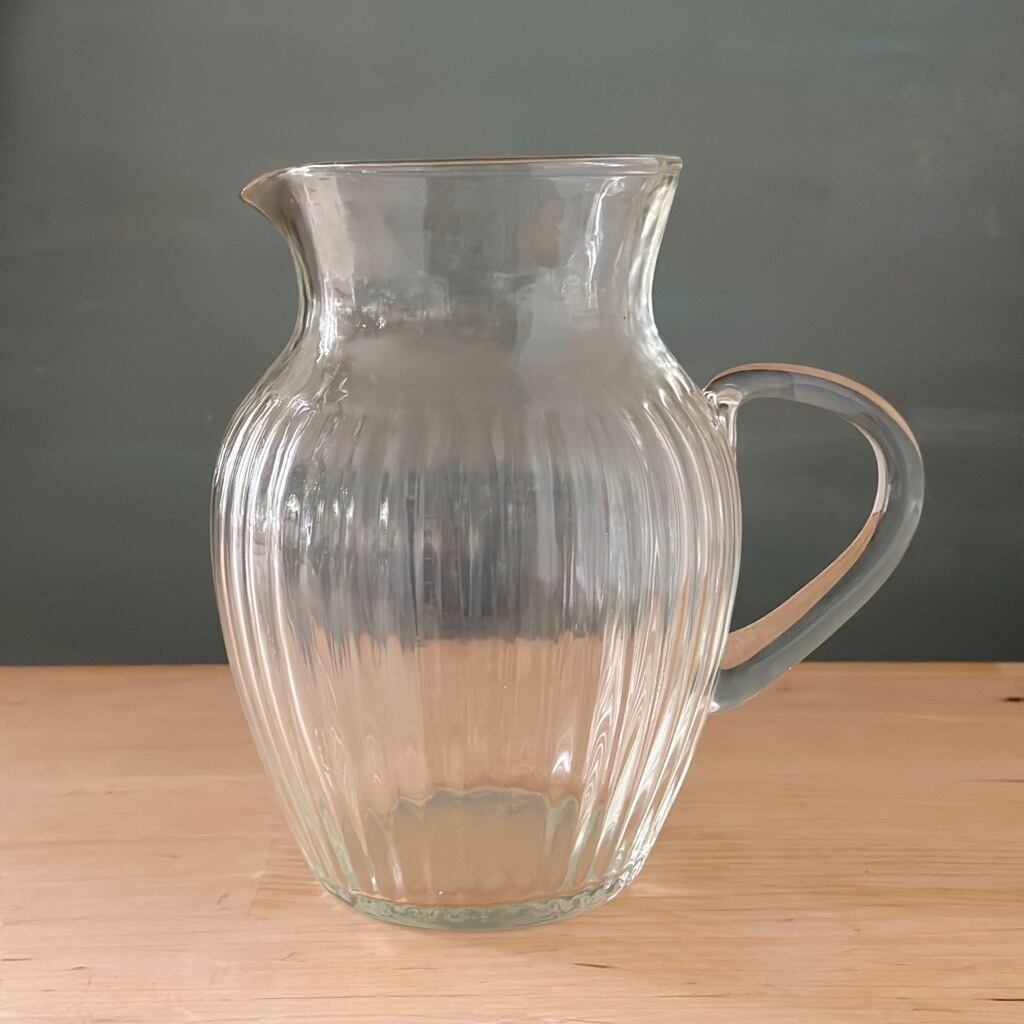 曲線が美しいクリアなガラス製のピッチャー。口が細い形状が植物を安定させて使い勝手の良いサイズ感も魅力です。